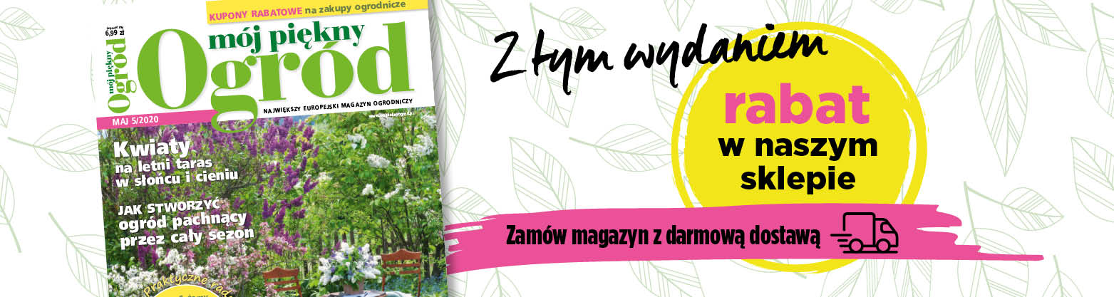 Od 17 kwietnia do 14 maja zakupy ogrodnicze możecie zrobić u nas z rabatem. W majowym numerze magazynu „Mój piękny ogród”, który ukarze się w punktach sprzedaży od 17 kwietnia dostępne będą kupony rabatowe. Osobom, które przy płatności za rośliny okażą kupon rabatowy, udzielony zostanie rabat w wysokości 10% od ceny detalicznej.