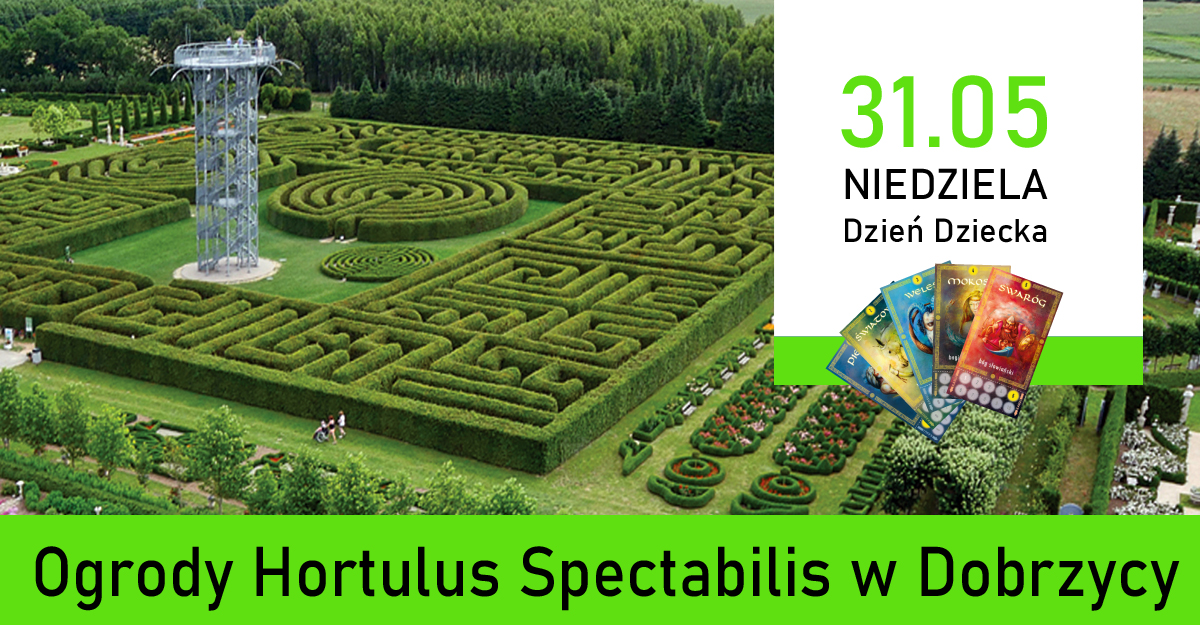 31 maja (niedziela) w Ogrodach Hortulus Spectabilis świętujemy Dzień Dziecka. Zapraszamy do rodzinnego rozegrania plenerowej zabawy Labirynt Mocy.