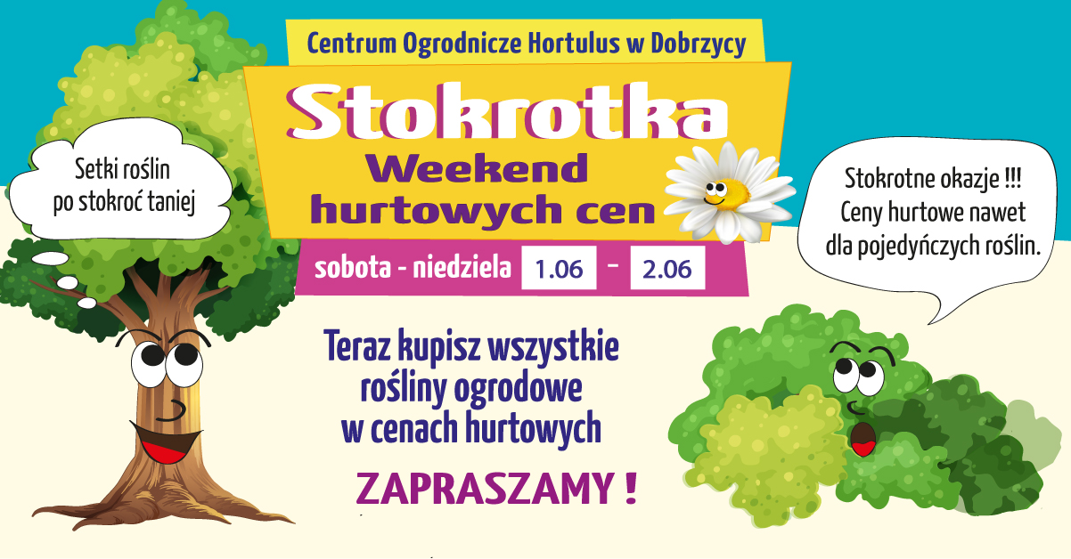 Wszystkich właścicieli działek, ogrodów, tarasów i balkonów zapraszamy na zakupy w promocyjnych cenach! W dniach 1-2.06.2019 rośliny ogrodowe kupicie u nas w cenach hurtowych, bez względu na wielkość i wartość zakupów.